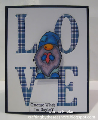 ReplyDeleteThis is so adorable. I am such a fan of gnomes and I love what you have done with this one. The plaid is just perfect, and I don't see any crookedness...lol. The greeting is so stinkin' cute too.