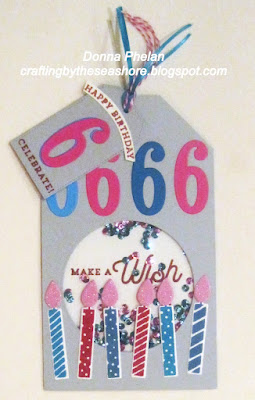 ReplyDeleteOh my goodness Donna, you have me laughing this morning, good reminder not to use more than one 6 at a time on my projects :) This is too cute though, love the sparkle your gems set off and the way the candles look like they are dancing across the bottom, like the way the happy birthday arches across the top of the little tag too, finished off by all the ribbons and twine!