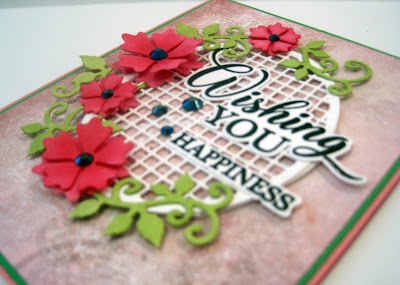 ReplyDeleteOh, the grid on that oval! Love it with your sweep of pretty red flowers and curly vines! Your Lily of the Valley die is one of the prettiest I've seen, and framed so beautifully, enhanced by the blues, and that cute little bow. You double aced this challenge, Donna!